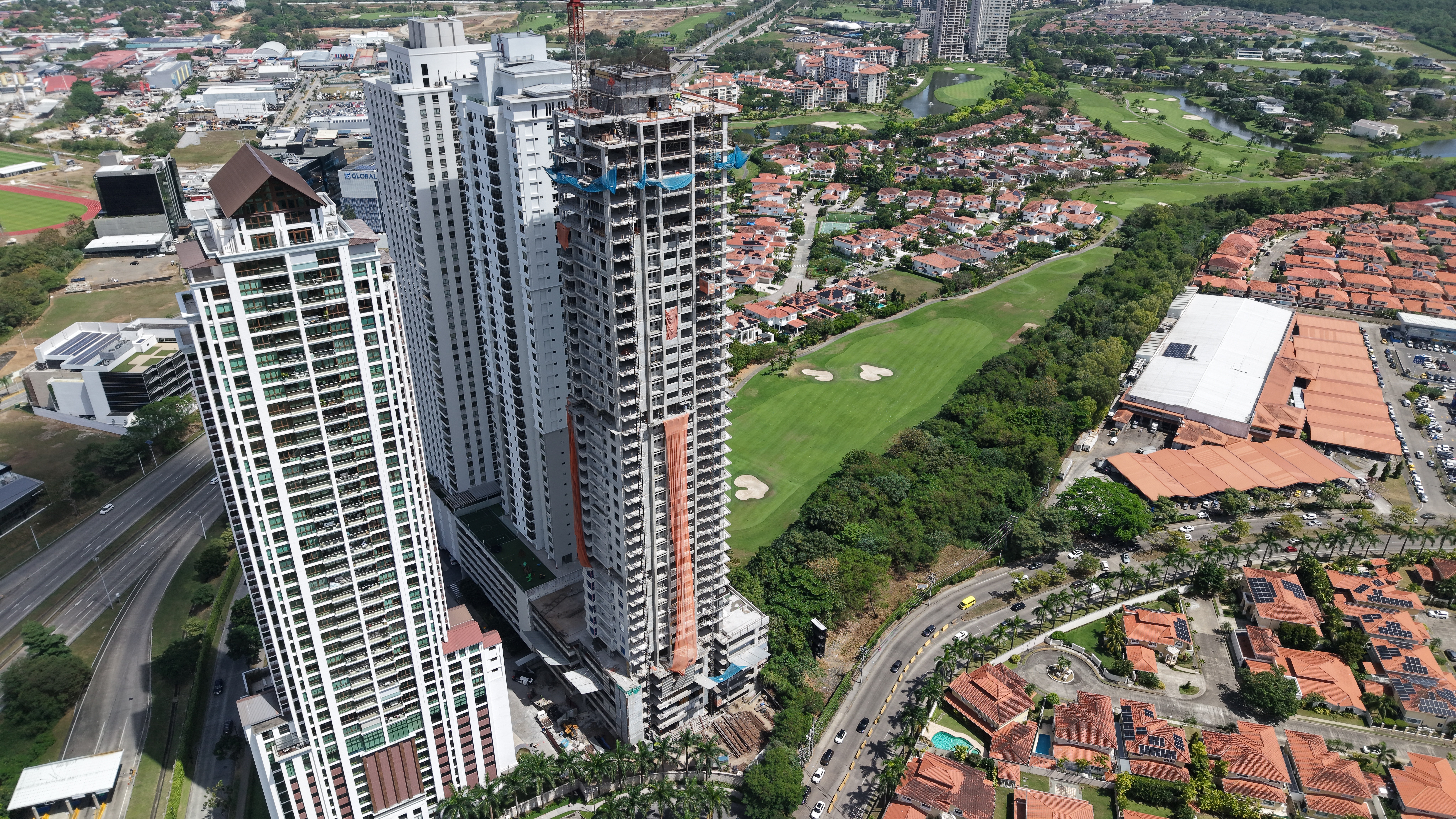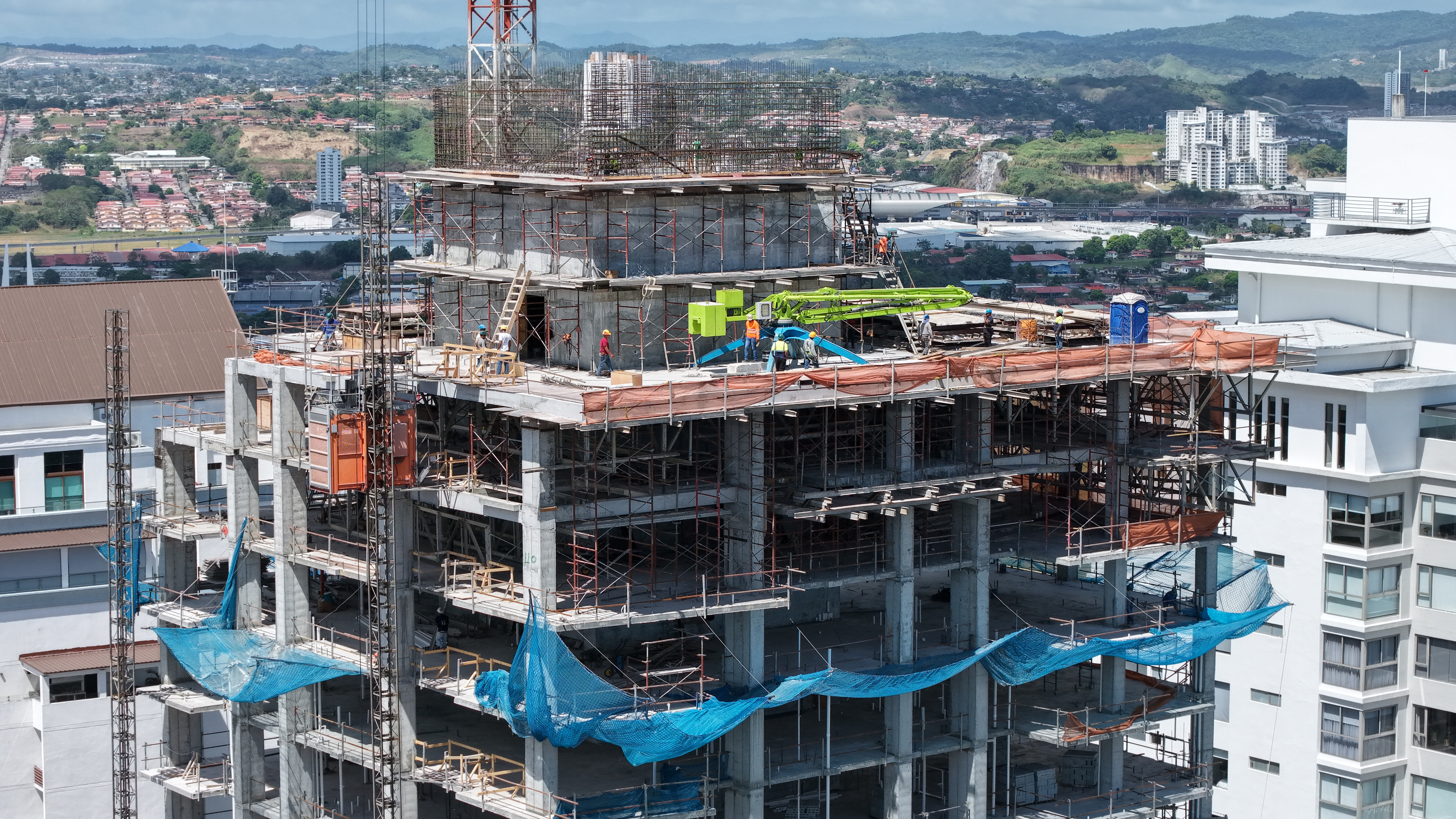 Celeste is a project involving the construction of the gray structure of a 46-story residential tower with post-tensioned slabs. Work includes pile cap exposure, earthworks, and concrete structure construction.