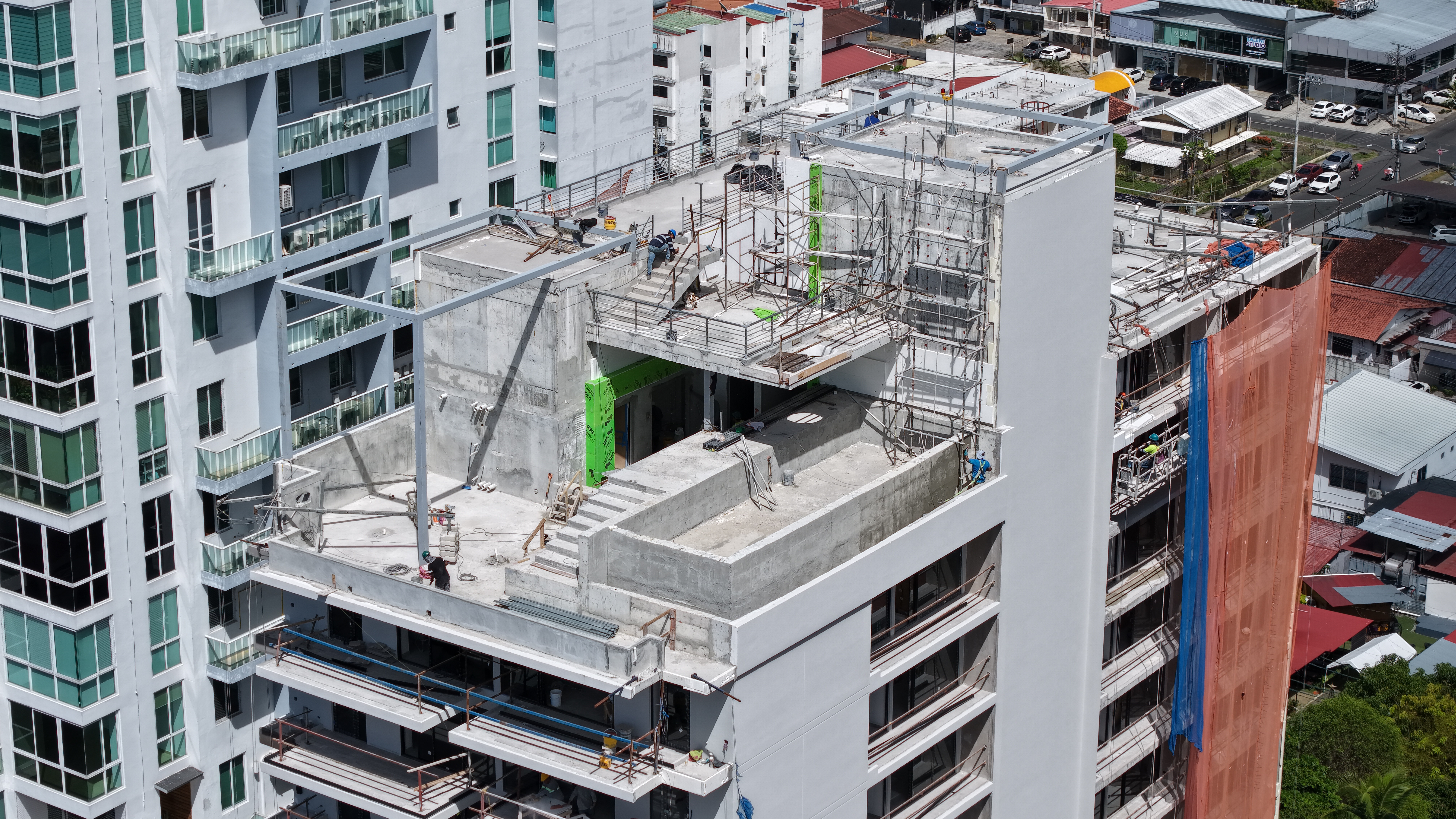 Be Living es un proyecto llave en mano para la construcción de una torre residencial de hormigón la cual contiene locales comerciales en su planta baja, un segundo piso de estacionamientos, 13 niveles de apartamentos, área social, azotea y losas técnicas.